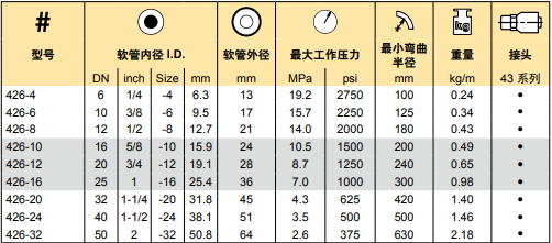 適用介質:石油基液壓油,水乙二醇,潤滑油,空氣和水。用于1.7MPa以上的空氣時,軟管需針刺。